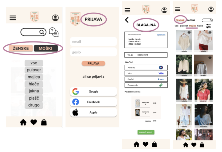Aplikacija je podobno zasnovana kot druge podobne aplikacije za prodajo oblačil.