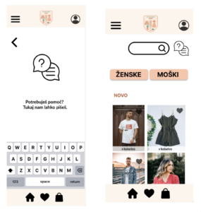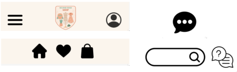 Uporabnik lahko razume ikone, ki se pojavijo. Na sliki so ikone do uporabniškega profila, menija, domače strani. Vidimo lahko tudi ikono za všečkane stvari ter košarico. Lahko se z urporabnikom tudi sporazumeva, ima tudi ikono za vprašanja in odgovore, ter iskalnik.